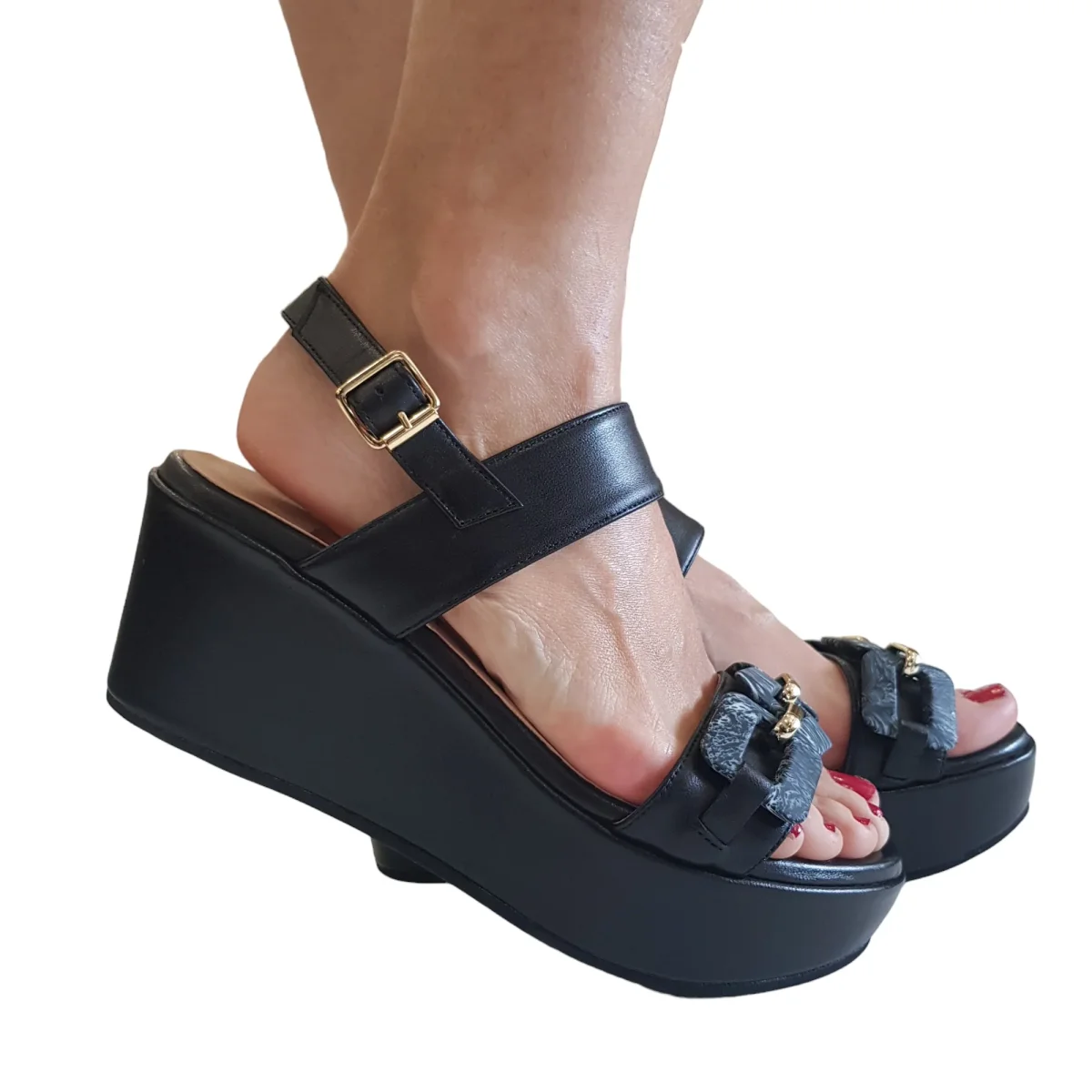 Andrea Pinto Zeppa alta 9,5 cm camoscio beige plateau 4,5cm fascia piede nappa incrociata art.756