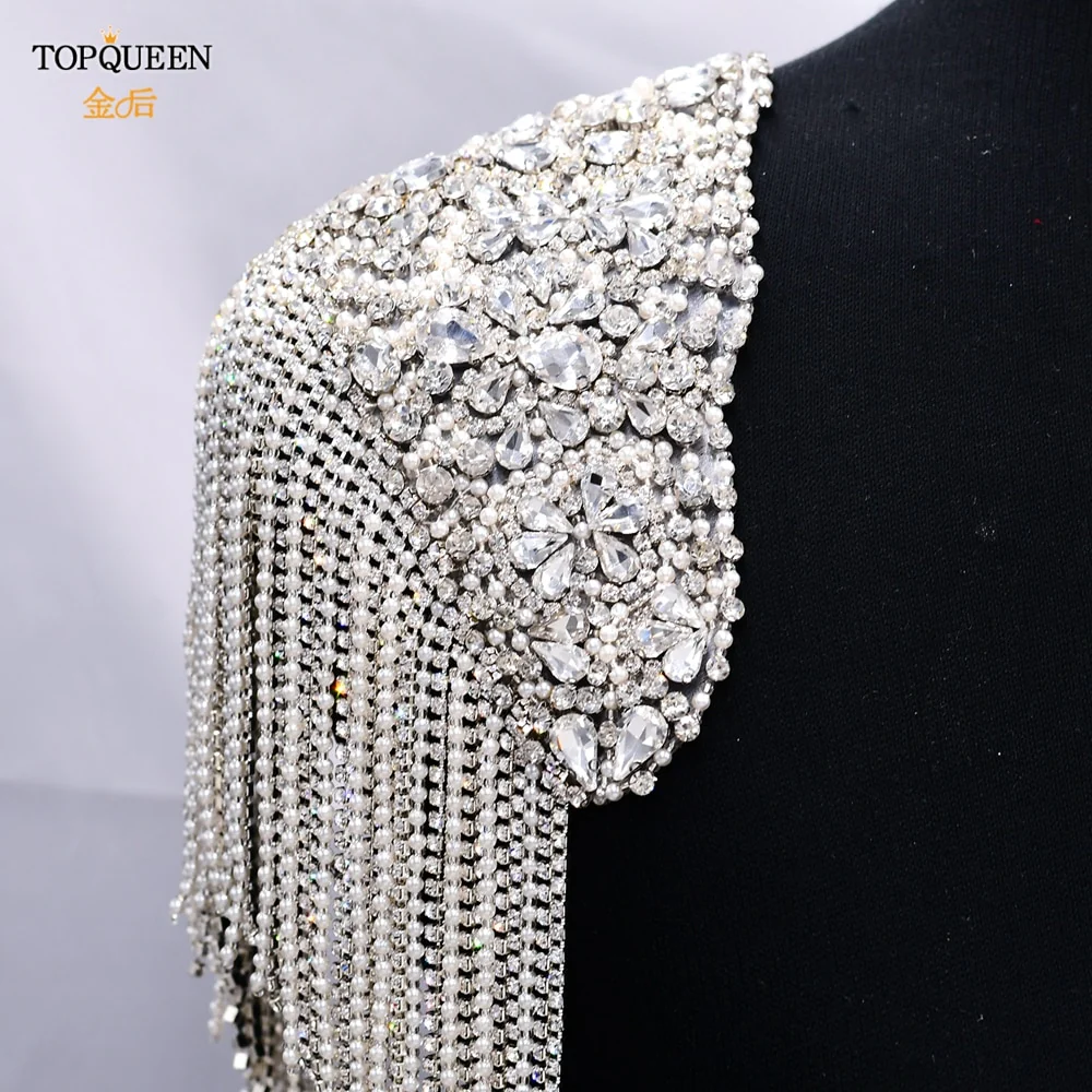 Accessori da sposa-Lussuosa catena a spalla brillante 2023 per abiti da sposa, avvolgente per feste nuziali con perline di cristallo, strass e frange di diamanti