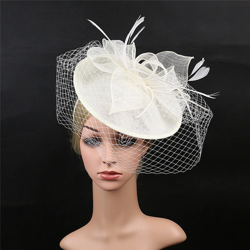 Accessori per capelli sposa in piume e rete vintage fatti a mano