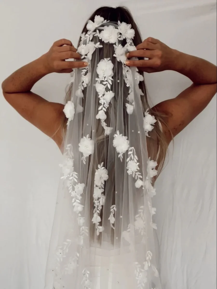 Velo da sposa di Alta Qualità, Fatto a Mano con Perle e Perline, 1 Strato Morbido e Incantevole