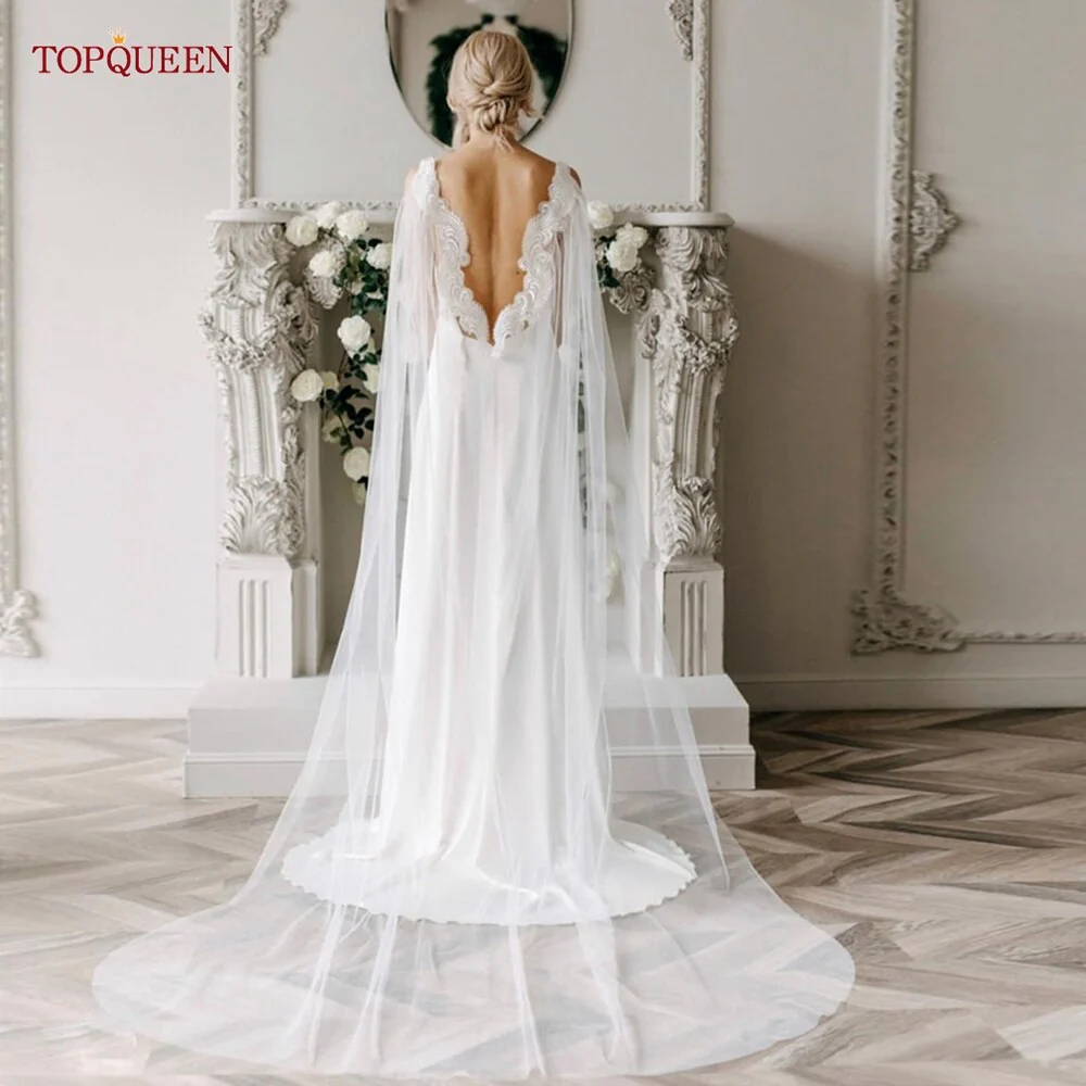 Giacca da sposa a velo con Applicazioni a Maniche Lunghe, Coda Lunga, Cappotti, Coprispalle e Mantelle in Pizzo e Tulle