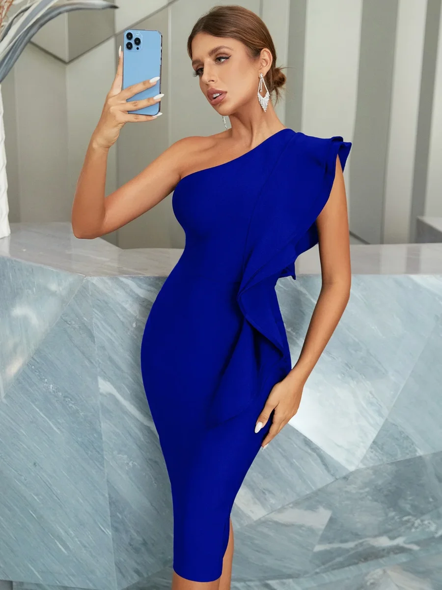 Abiti da damigella d’onore estivi eleganti da donna aderenti con fasciatura sexy monospalla senza maniche abiti da sera da sera con volant neri